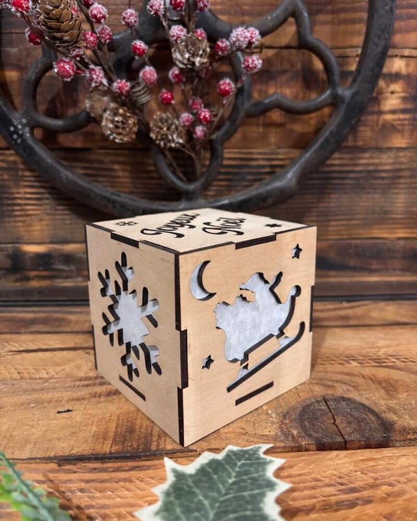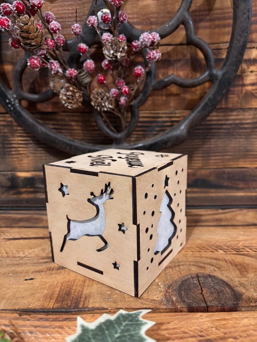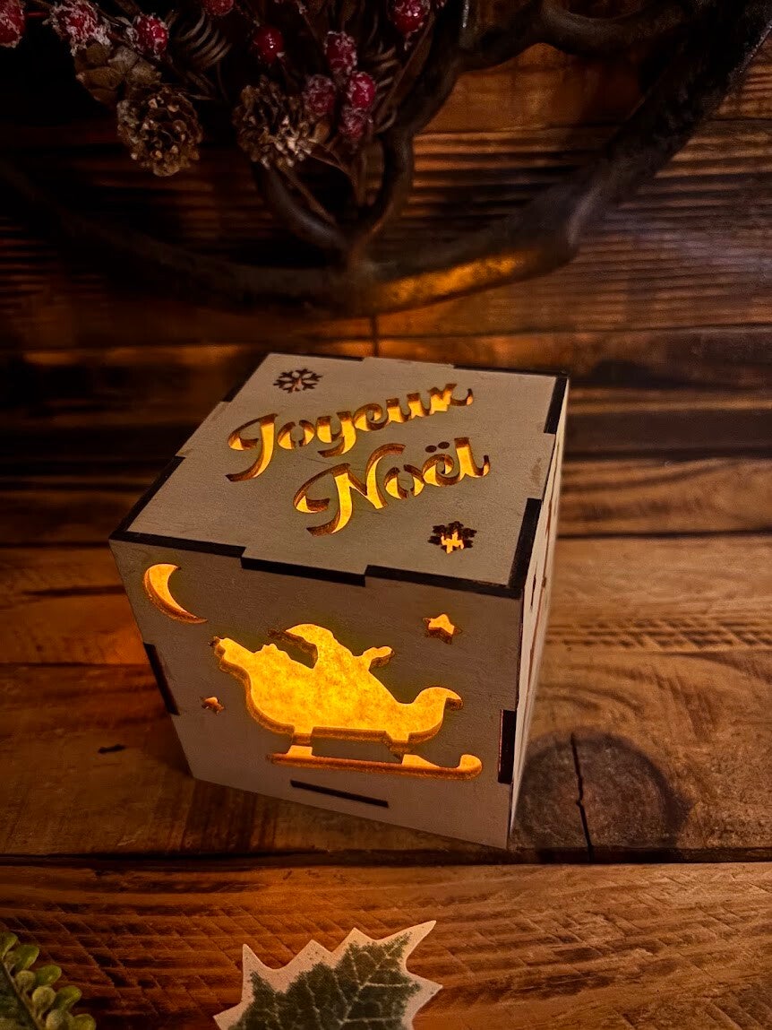 Cube lumineux personnalisé, en contreplaqué de bouleau 3mm.
