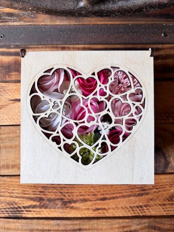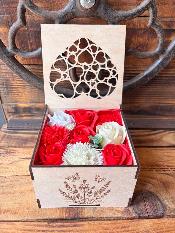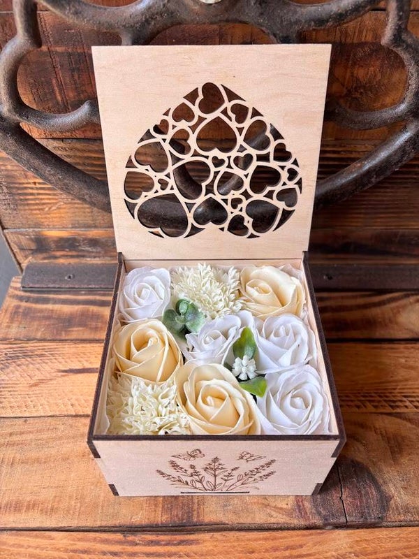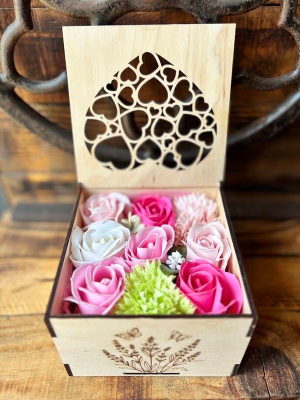 Coffret "Déco provençale" en contreplaqué de bouleau, composé de roses de savon
